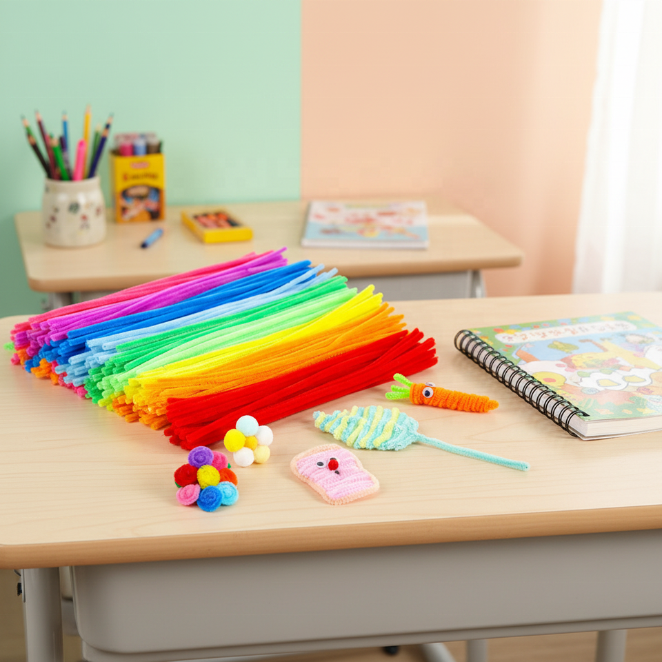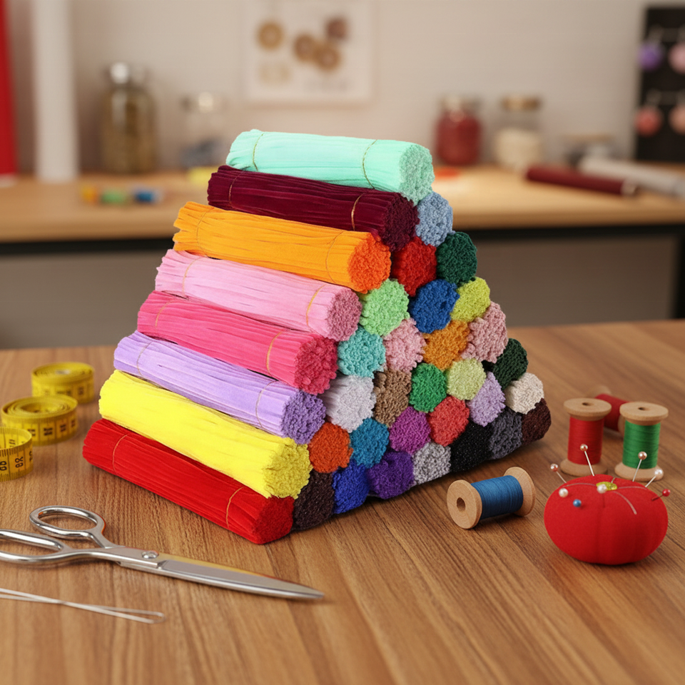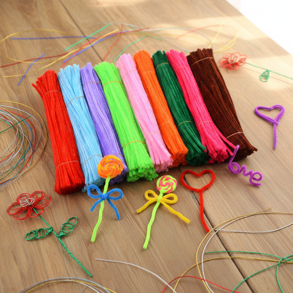 Vente directe usine : 100 pièces de fil chenille enroulé, type 'pipe cleaner', pour fleurs DIY, jouets et bouquets, idéal pour l'artisanat.