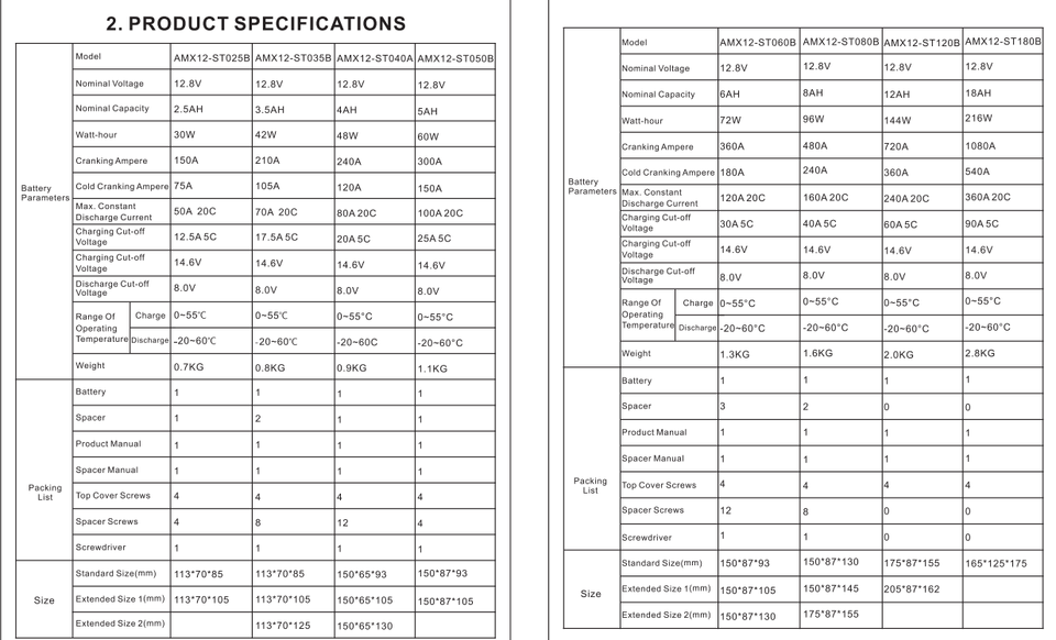 puissance de démarrage CCA:75A (-18℃ ampères de démarrage à froid