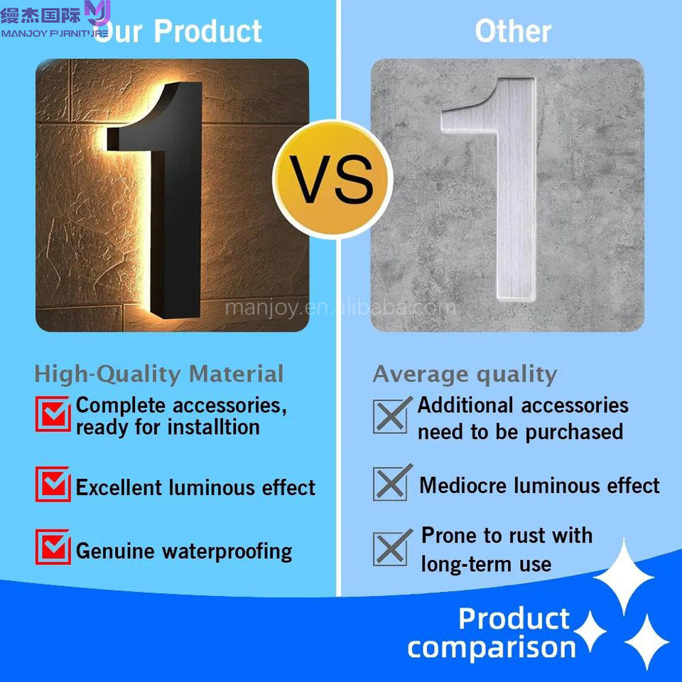 Ventes d'usine, numéro de maison en acier inoxydable 3D LED pour extérieur, lettre lumineuse en métal, logo, plaque de porte pour entreprises
