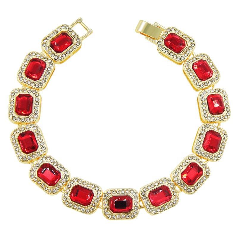 Alliage de vente d'usine avec diamant Hip Hop 12mm largeur rouge Rectangle Carbuncle Bracelet