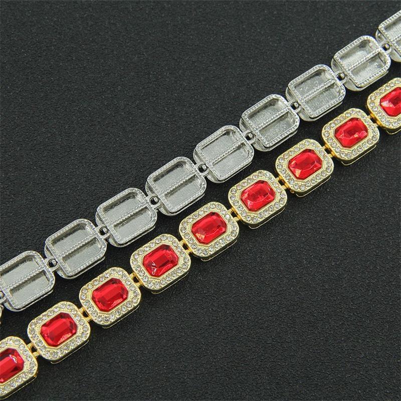 Alliage avec diamant hip hop 12mm largeur rectangle carbuncle bracelet