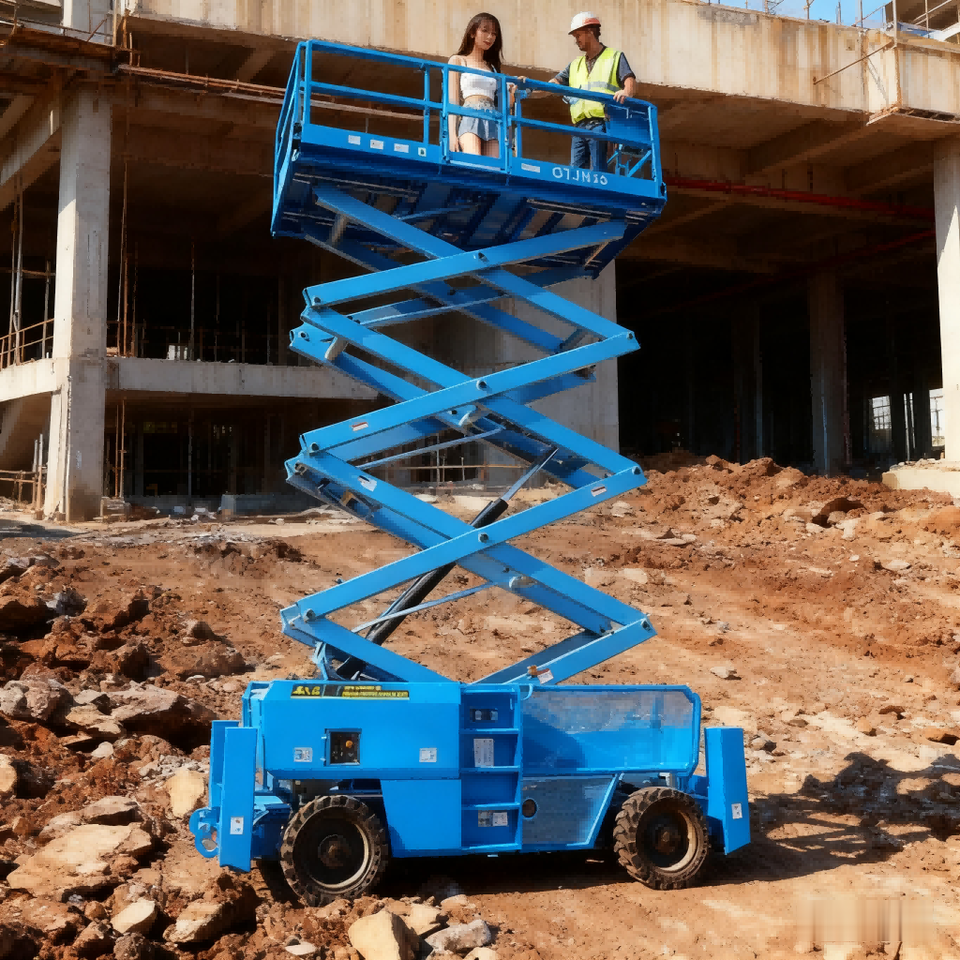 Vente en usine plate-forme de travail aérienne électrique tout-terrain à 4 roues motrices plate-forme élévatrice à ciseaux extérieure plate-forme élévatrice tout-terrain