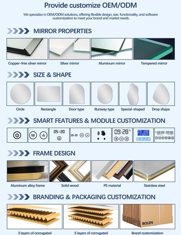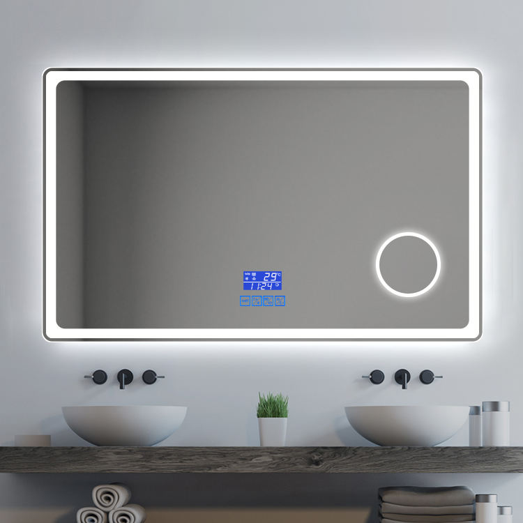 Miroir intelligent d'usine pour salle de bain, rectangulaire, écran tactile, rétroéclairé, lumière LED intelligente, miroir mural éclairé pour salle de bain