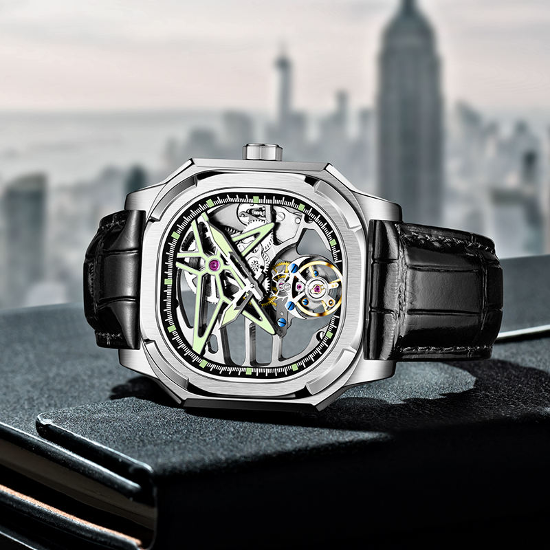Nom du produit:Montre squelette automatique tourbillon creux pour hommes