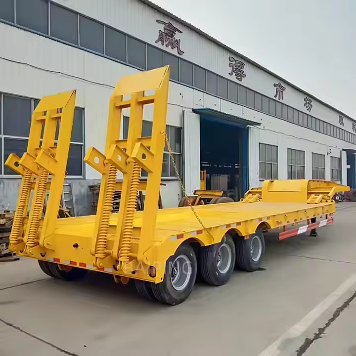Semi-remorque à plateau surbaissé à col de cygne pliable en acier à 2/3/4 essieux, provenant directement de l'usine, prix usine Afrique du Sud Amérique
