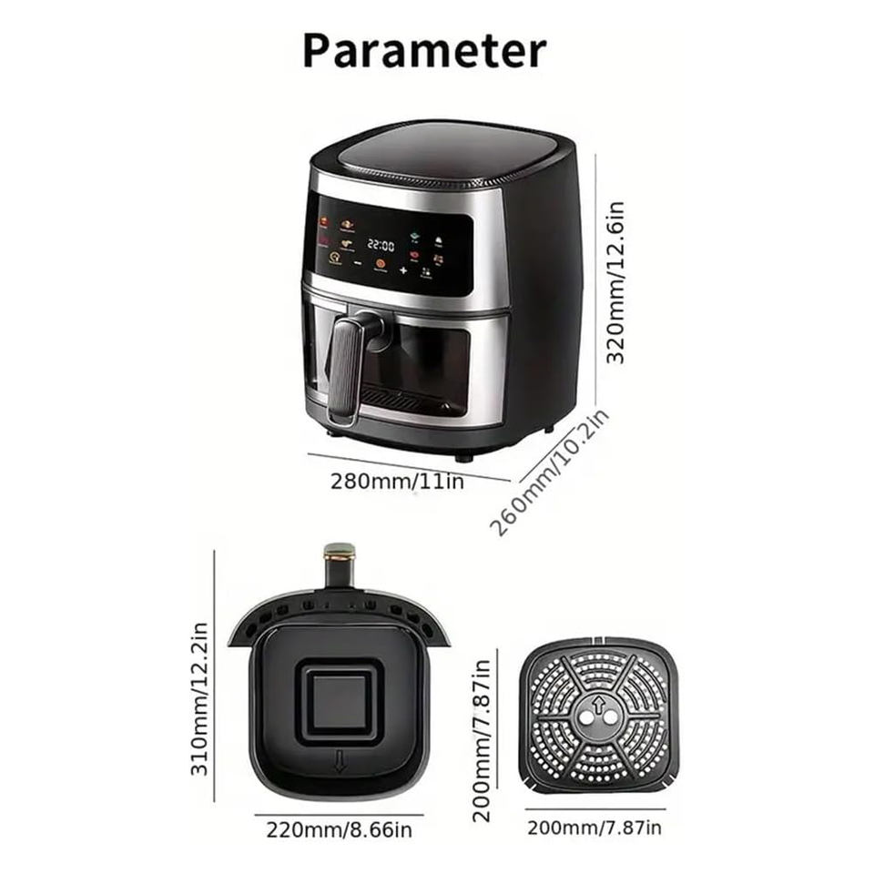 Friteuse à air intelligente en acier inoxydable, électrique rapide, sans huile, 5L 6L 7L 8L 12L, forme carrée classique, pour usage domestique