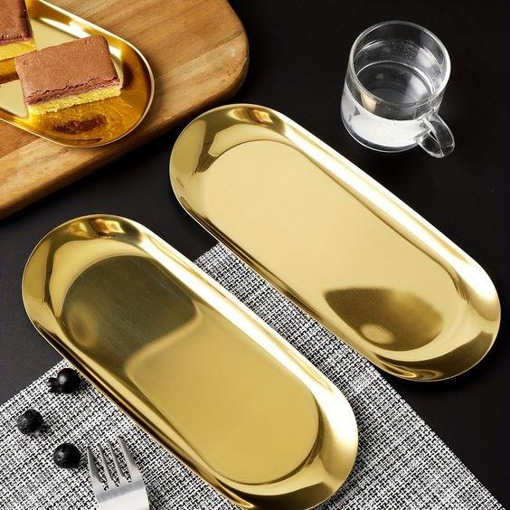 Usine en acier inoxydable doré ovale serviette plateau Service plateau bijoux plaque mariage Restaurant