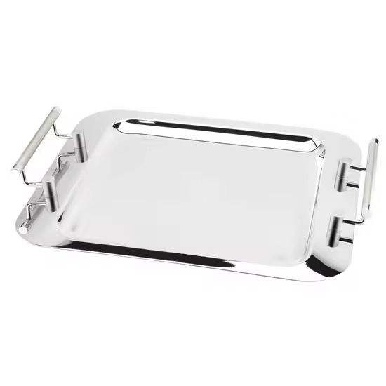 Plateau de service rond en acier inoxydable, finition dorée brillante, ensemble de plateaux métalliques pour restaurant, hôtel, mariage, fête