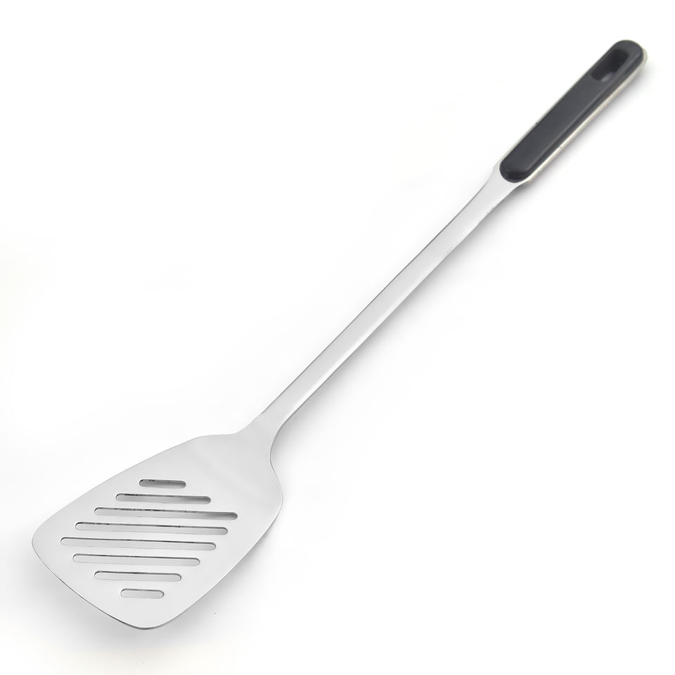 Ustensiles de cuisine en acier inoxydable d'usine, manche noir, 17 pouces, nouveauté, matériau solide, prix bas, ustensiles de cuisine, manche noir