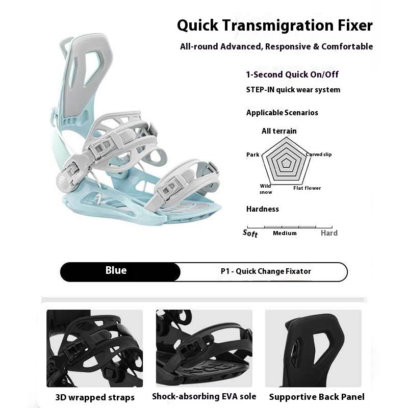 Fixations de snowboard Freestyle Factory Step-in - Fixations de snowboard tout-terrain réglables en alliage d'aluminium, tailles S, M, L, personnalisables