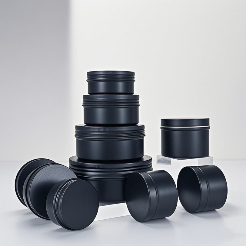 Stock d'usine – Boîtes en métal noir mat de 30 ml, 60 ml, 100 ml pour bougies – Contenants ronds en aluminium avec couvercles