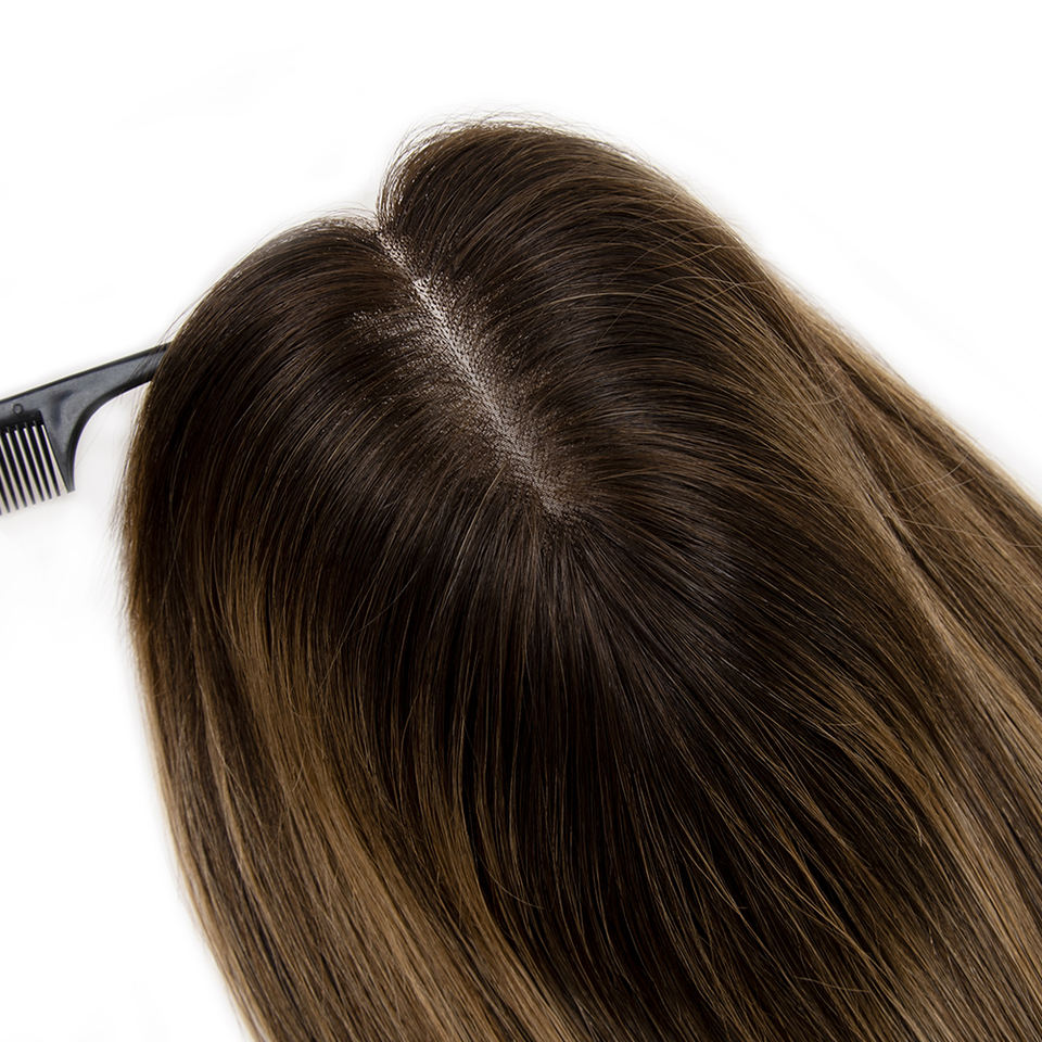 Stock d'usine : Topper mono en filet 6*7, cheveux humains vierges bruts européens, couleur piano, base en soie, lisse, en stock
