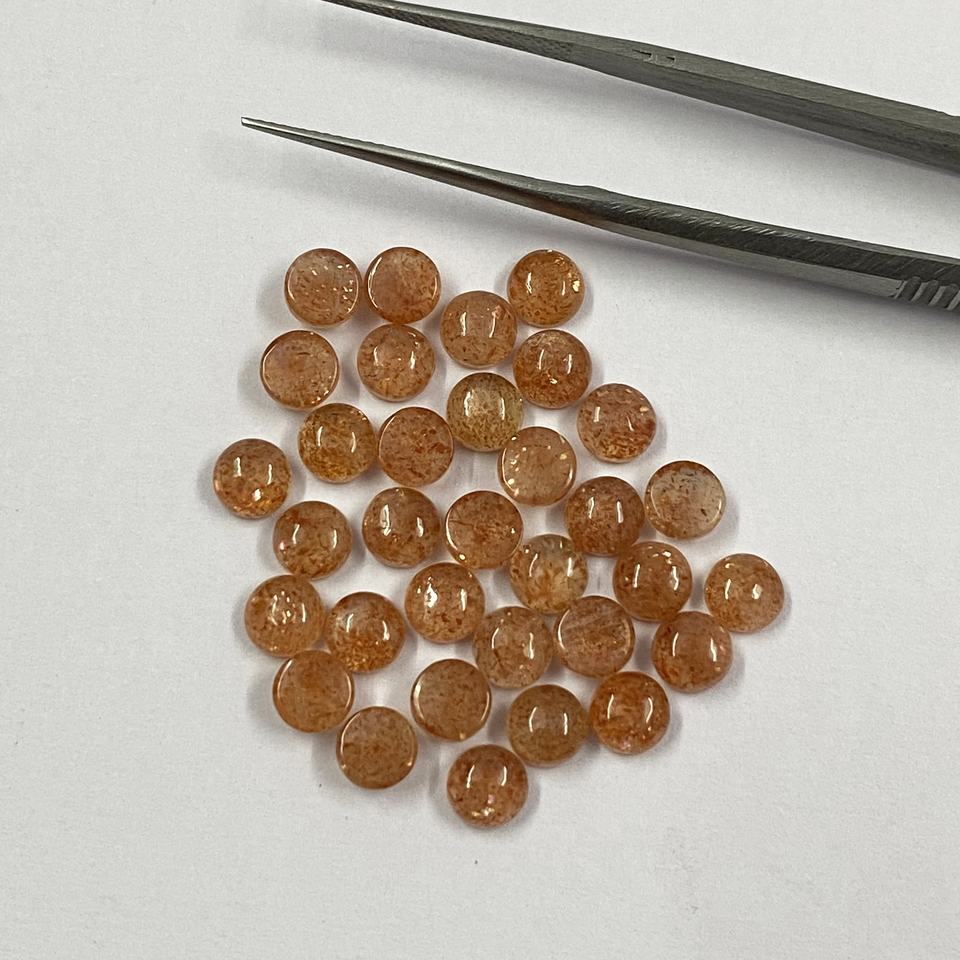 High AAA Grade 5mm Smooth Natural Orange Sunstone Crystal Gemstone Cabochons Loose Bulk Calibrated Gemstones Available for Order