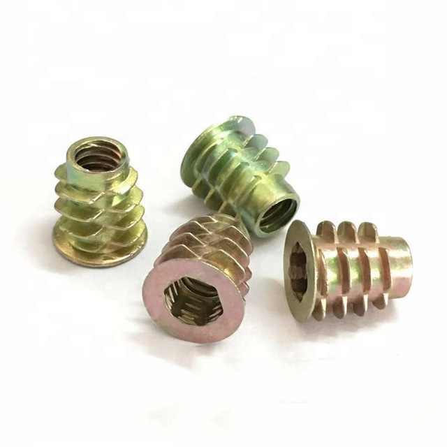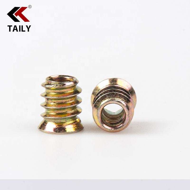 Inserts filetés de meubles personnalisés en stock d'usine écrou d'insertion M4 M5 M6 M8 M10 Type D E écrou d'insertion d'écrou pour bois