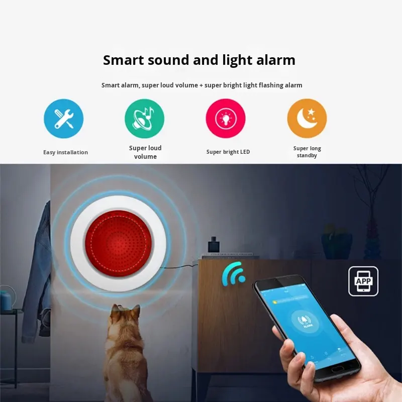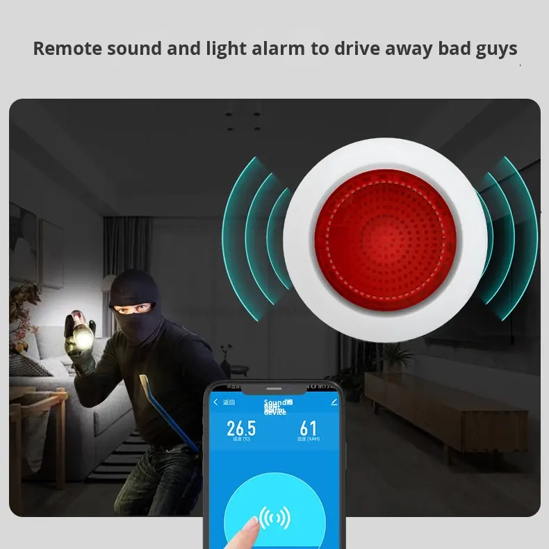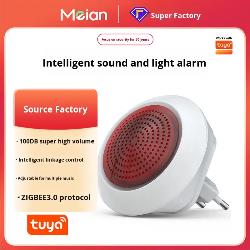 Stock d'usine Meian Graffiti Alarme sonore et lumineuse intelligente Zigbee 3.0 Prise en charge de l'application Tuya Bip sans fil haute puissance 100 dB