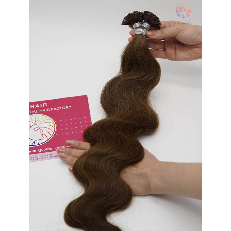 Usine Super Double Dessiné Cuticule Alignée Vierge Vietnamien Cheveux Bruts Italien Kératine Prélié Pointe Plate Cheveux Humains Vague Naturelle