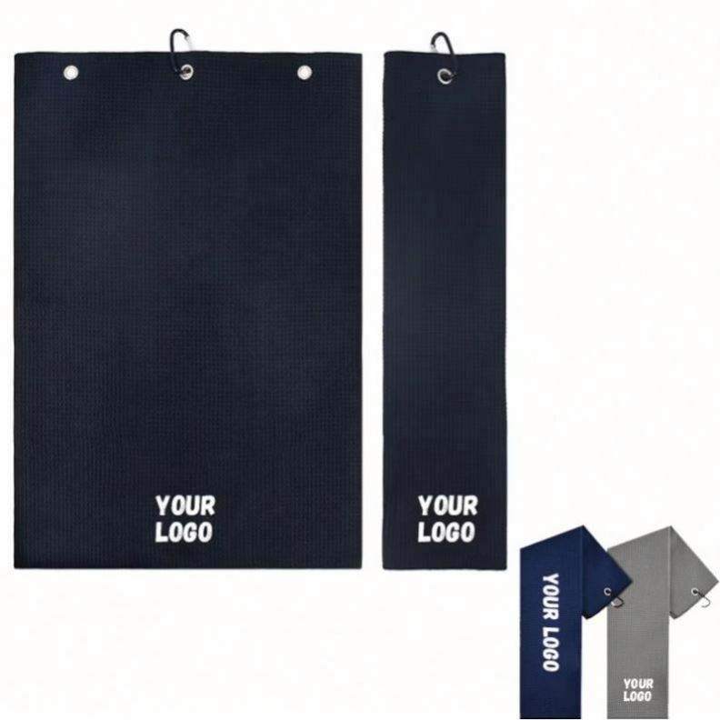 Serviette de sport et de golf en microfibre gaufrée ultra absorbante avec logo brodé personnalisé et crochet en métal, fournie par l'usine