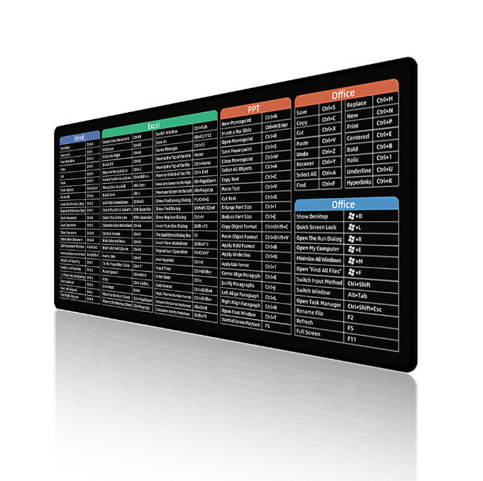 Fournisseur d'usine tapis de souris Grande touches de raccourci pour Ps Ppt Word Excel Cad tapis de souris en caoutchouc étanche pour l'école de bureau