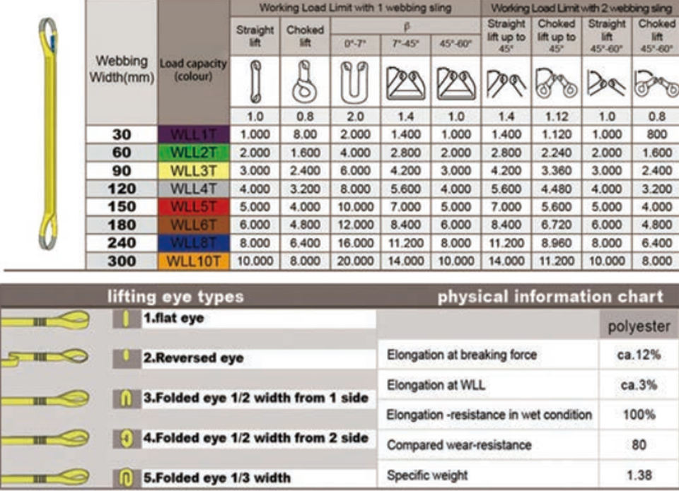Sangle plate en polyester de 1 à 10 tonnes, fournie par l'usine, avec code couleur, pour levage textile, sangle de levage pour grue textile