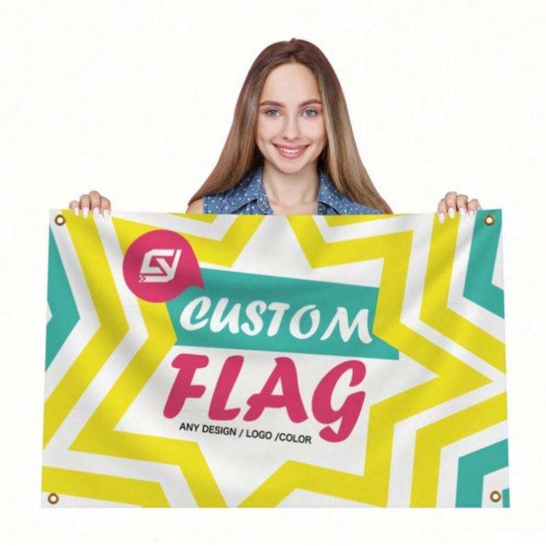 Drapeaux et Bannières Personnalisés en Polyester Jaune à Étoiles, Simple ou Double Face, avec 2 Œillets – Approvisionnement Direct Usine