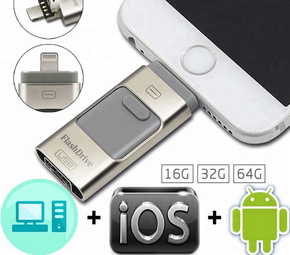 Clé USB 3.0 en alliage d'aluminium 64 Go pour iPhone/iPad/Android/PC/Mac - Transfert et sauvegarde de photos et vidéos (Bleu) - Fournisseur d'usine