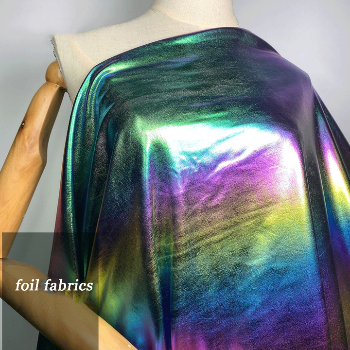 Fourniture d'usine Polyester brillant métallique coloré veste fantaisie brillant feuille tissus Spandex vêtement dentelle tissus pour femmes robe