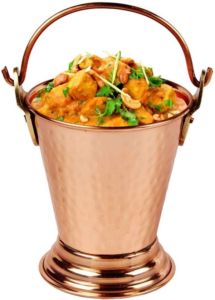 Seau martelé en acier au cuivre de conception classique d'approvisionnement d'usine plats indiens servant des articles en métal à vendre