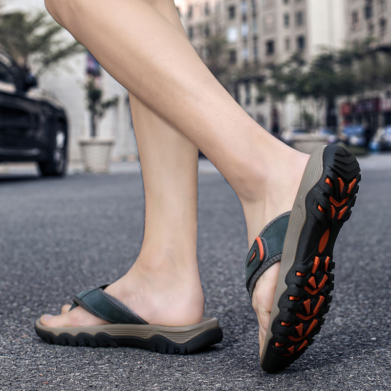 Tongs en cuir de vache faites main, semelle caoutchouc, homme, extérieur & été, antidérapantes, 1 paire, logo personnalisé