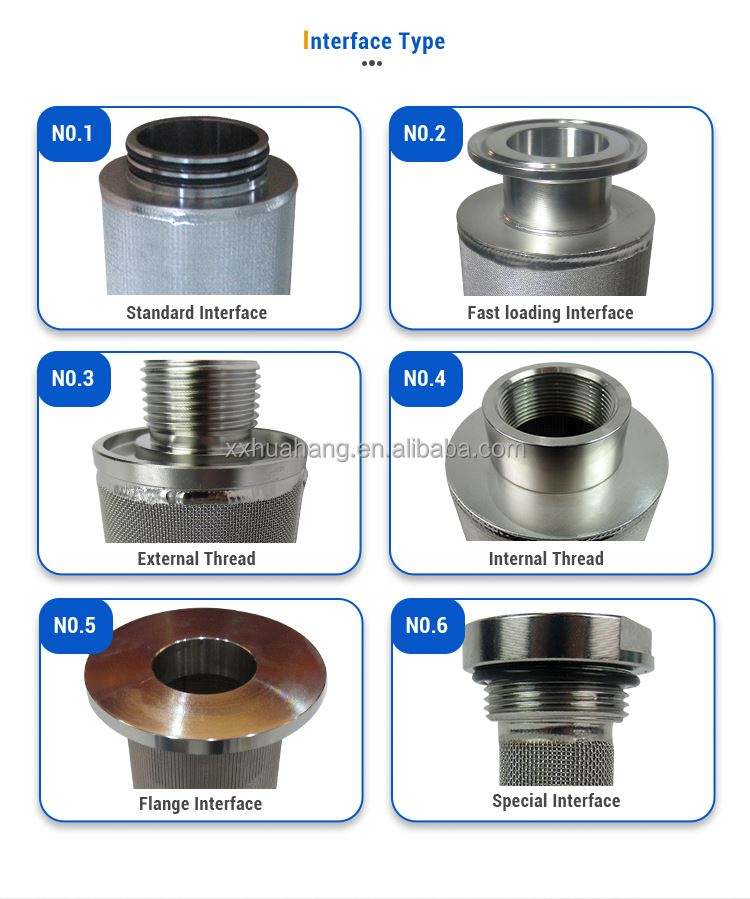 L'approvisionnement d'usine personnalise l'élément filtrant fritté de maille d'acier inoxydable de cartouche filtrante mentale d'interface