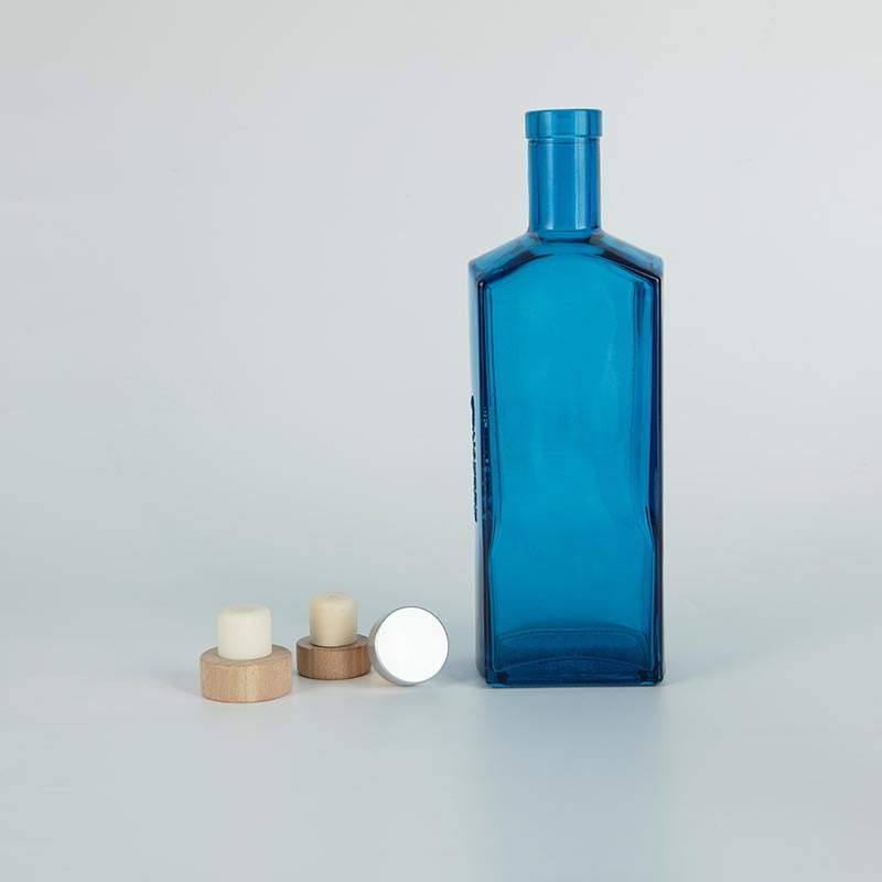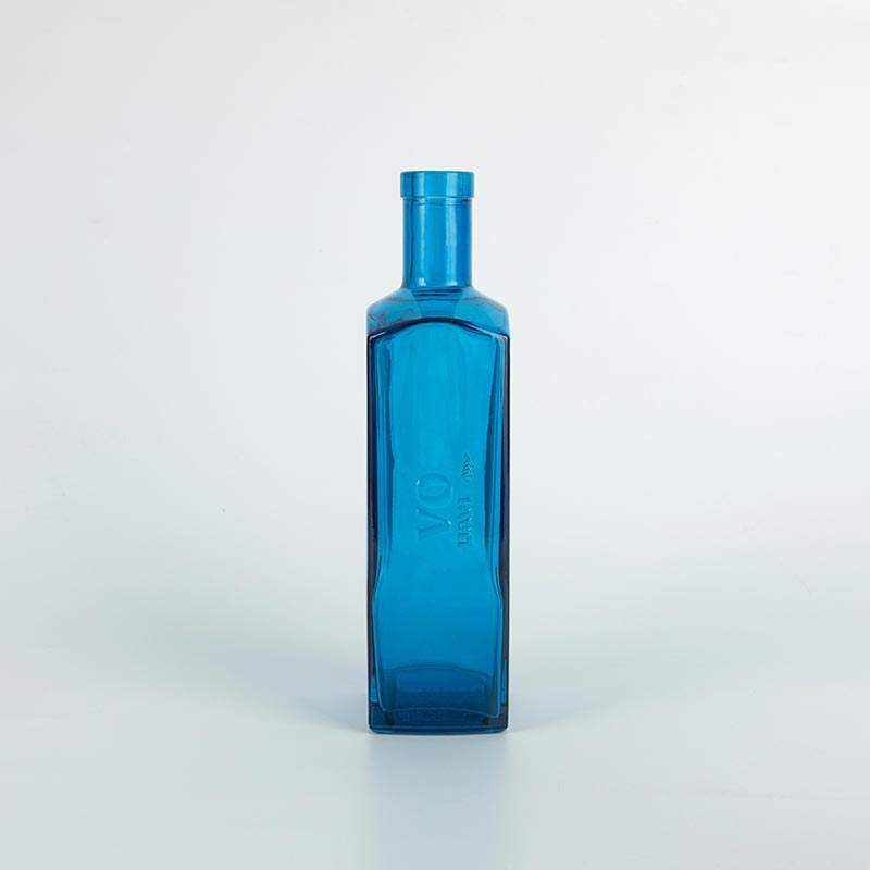 Bouteille de spiritueux en verre carrée plate bleue de 75 cl avec logo gravé personnalisé, prix de gros d'usine, pour vodka, gin, avec bouchon de bar