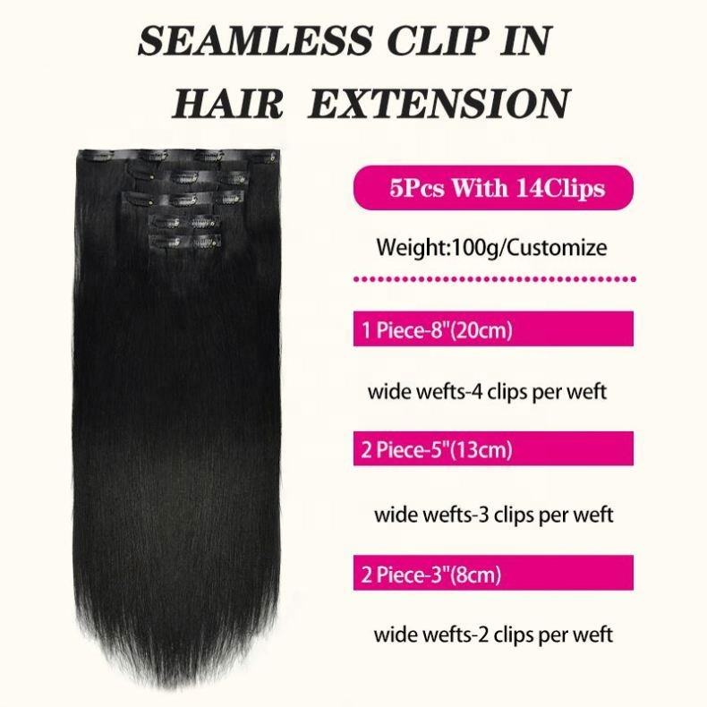Extensions de cheveux à clips sans couture, double trame, cheveux humains alignés sur la cuticule, fournies par l'usine