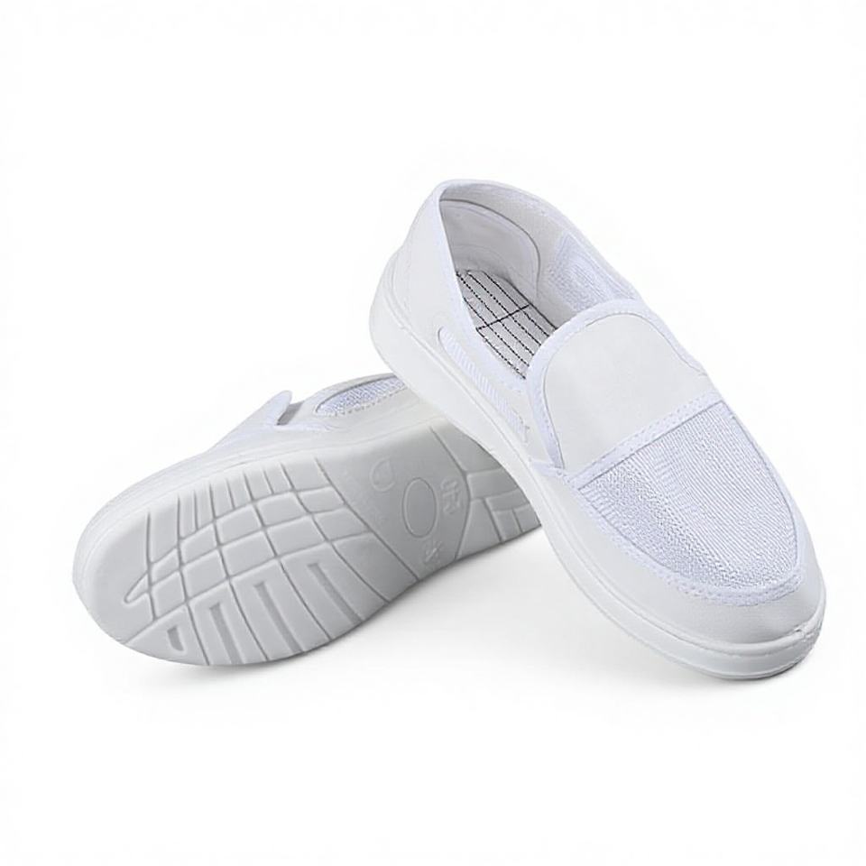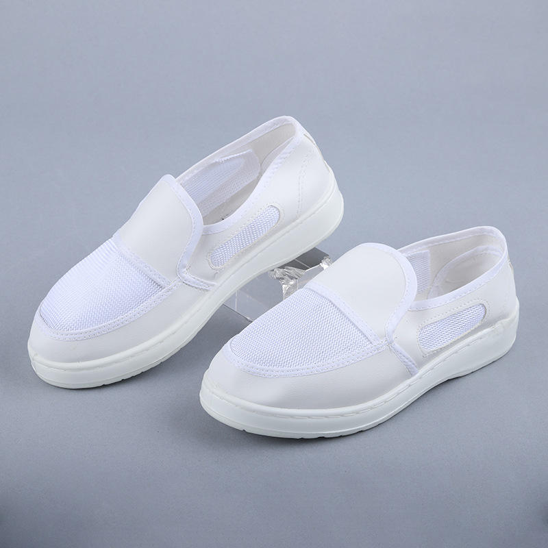 Chaussures de travail anti-poussière, fournies par l'usine, tige en cuir, semelle épaisse en PU, respirantes, blanches, en maille respirante, antistatiques