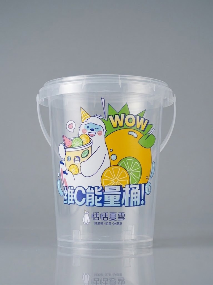 Seau d'emballage alimentaire jetable en plastique de qualité alimentaire, gobelets jetables, seaux à thé aux fruits avec couvercles – Approvisionnement direct usine