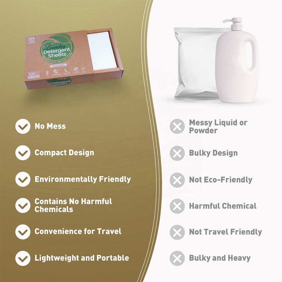 Fournisseur d'usine, bonne vente, vêtements propres, célèbres bandes de lavage écologiques, papier détergent pour le lavage, feuilles de détergent et d'adoucissant pour le linge