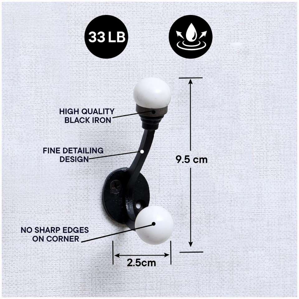 Crochet mural décoratif en céramique et fer forgé noir à double boucle, fait main, pour manteaux et sacs, vente en gros, directement de l'usine