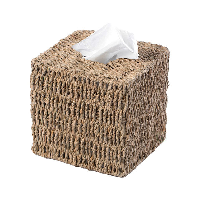 Boîte à mouchoirs tissée en matériau naturel fait à la main d'approvisionnement d'usine Boîtes en papier de conception simple pour la maison et l'hôtel
