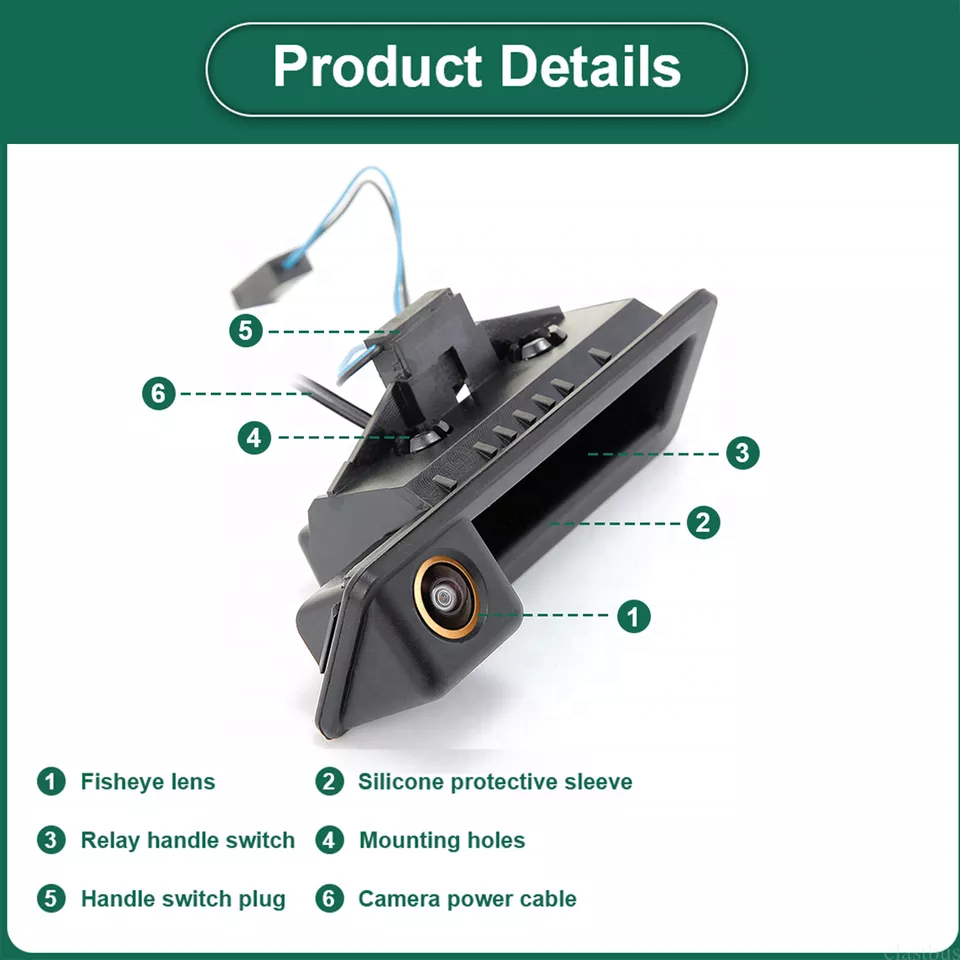 Caméra de Recul AHD Fisheye IPoster pour Poignée de Hayon, Alimentation d'Usine pour BMW Séries 3, 5, X5/6 E60/70/E82/E90