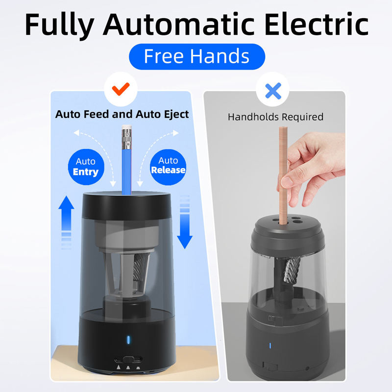 Factory Supply Modern Electronic Auto Release Stop Pencil Sharpener Plastic Metal Construction Customized Color for School