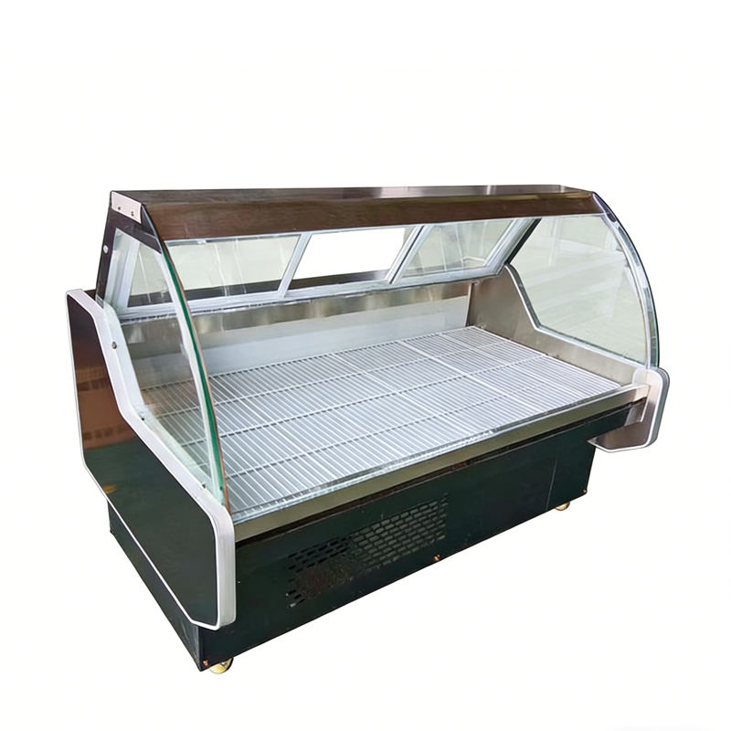 Vitrine réfrigérée multifonctionnelle en verre incurvé pour la vente de charcuterie, de salades et de fromages, fournie par l'usine