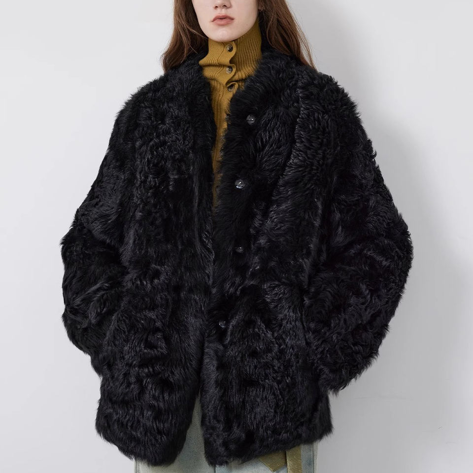 Fournisseur d'usine, manteau d'hiver en fourrure naturelle mi-bouclée, tissu en peau de mouton, vêtements de rue décontractés, manteau d'hiver chaud pour femmes