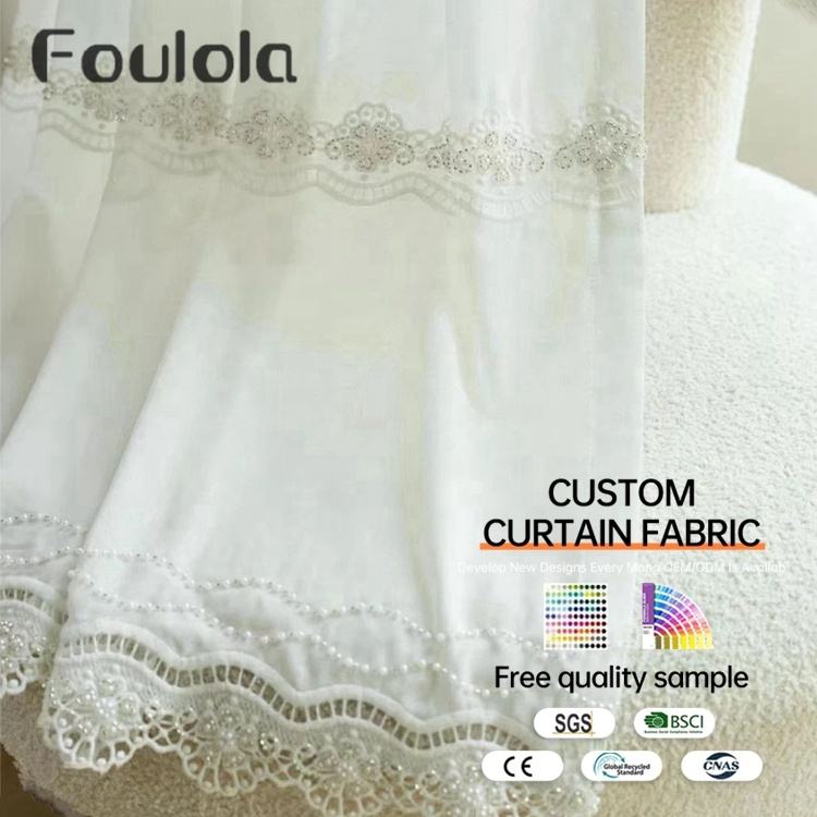 Nom du produit:Tissu de rideau transparent brodé avec motif de fleurs perlées à coudre