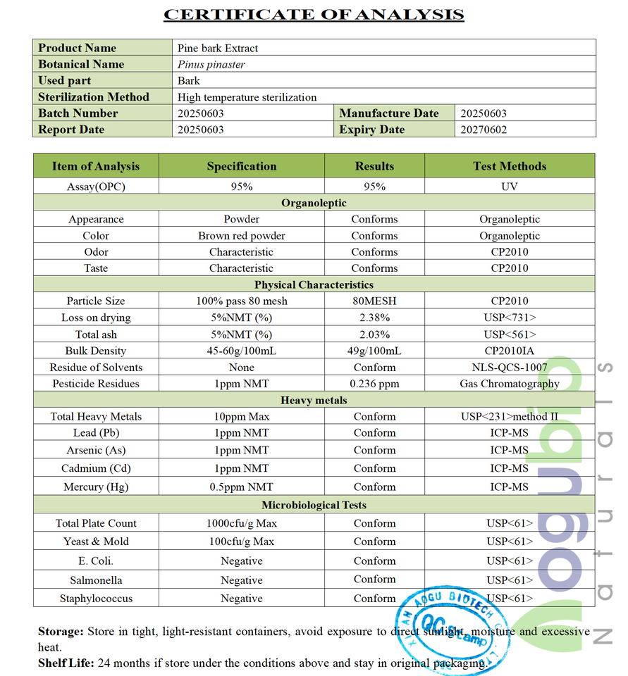 Poudre d'extrait d'écorce de pin de haute qualité 95% OPC avec vitamine, qualité alimentaire, approvisionnement en vrac