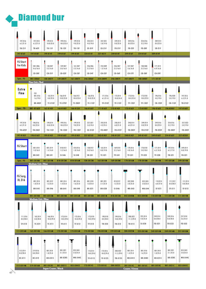 Les burs de diamant sont se composent de la jambe et de la tête fonctionnante