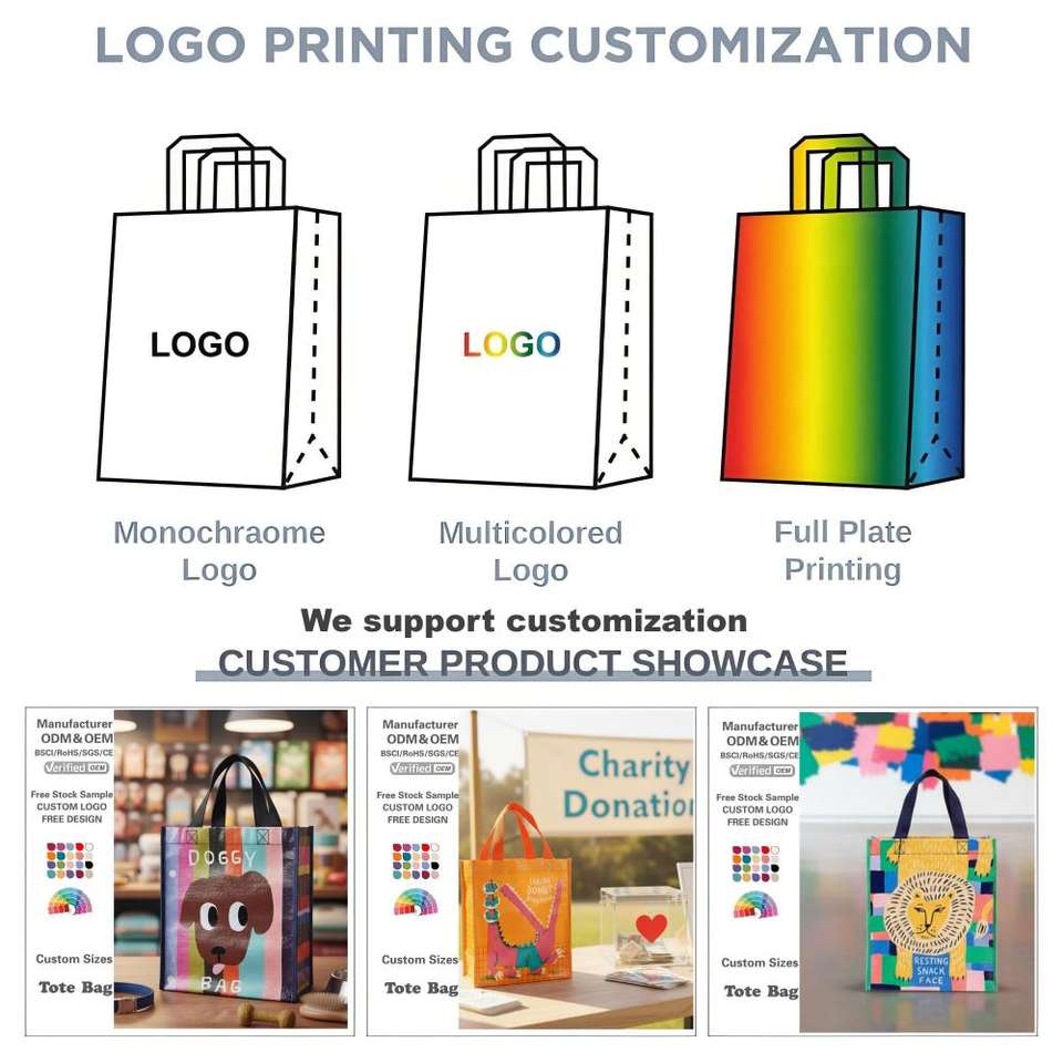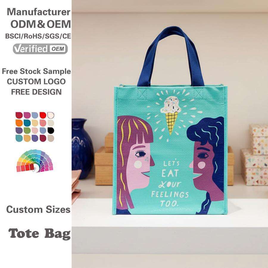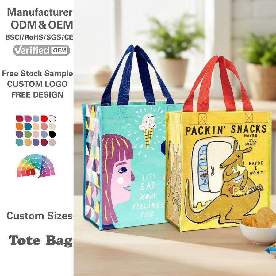 Sacs fourre-tout recyclés fournis par l'usine, sacs de shopping en PP tissé avec logo personnalisé imprimé