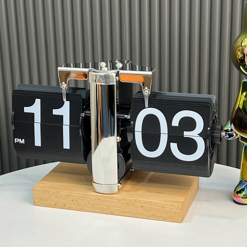 Approvisionnement d'usine rétro horloge de bureau ronde alarme numérique à retournement automatique OEM/EDM pour salon ABS silencieux et matériau en résine