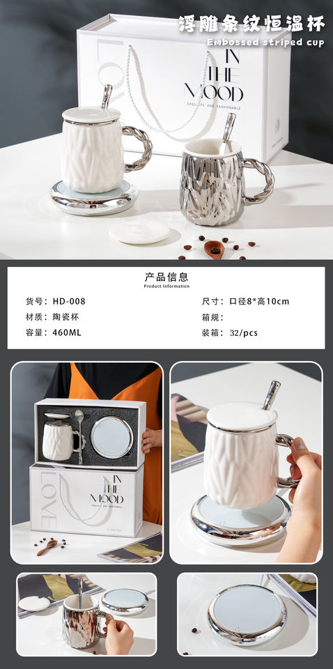Mug à café en céramique chauffant USB, thermostaté 55 degrés, avec cuillère, tasse à eau, tasse à café en céramique, tasse à thé en céramique – Fournisseur d'usine