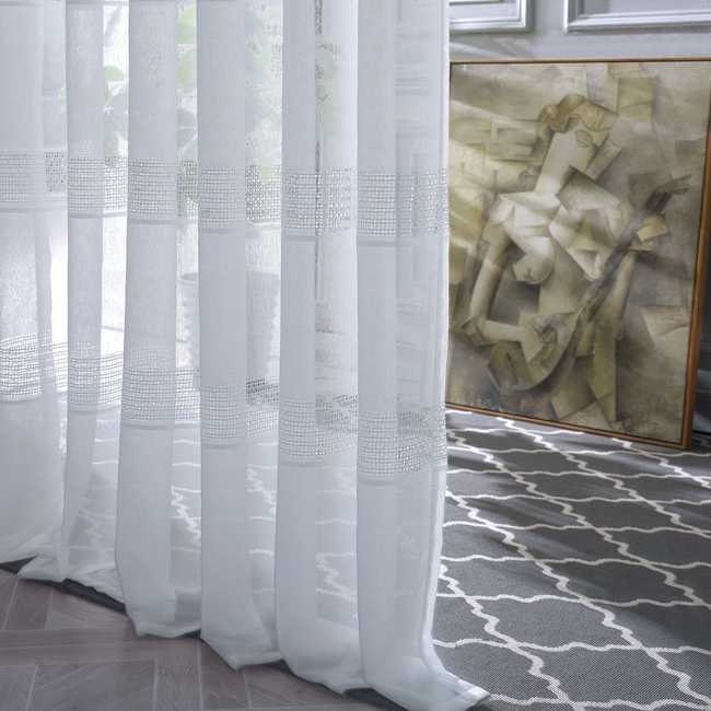 Nom du produit:Tissus pour rideaux de fenêtre en voile transparent blanc, dernier motif