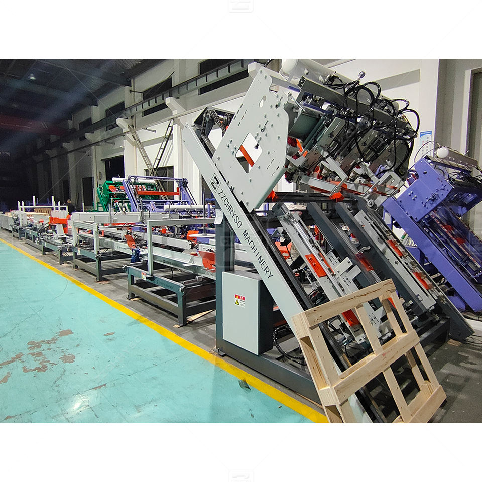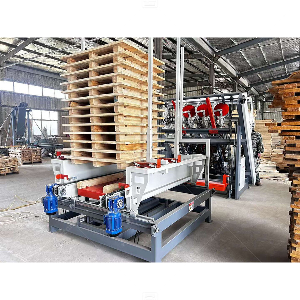 Palette automatique entière clouant la ligne:Empilement, impression de logo, connexion de bloc de palette, chanfrein, chiffre d'affaires, convoyeur
