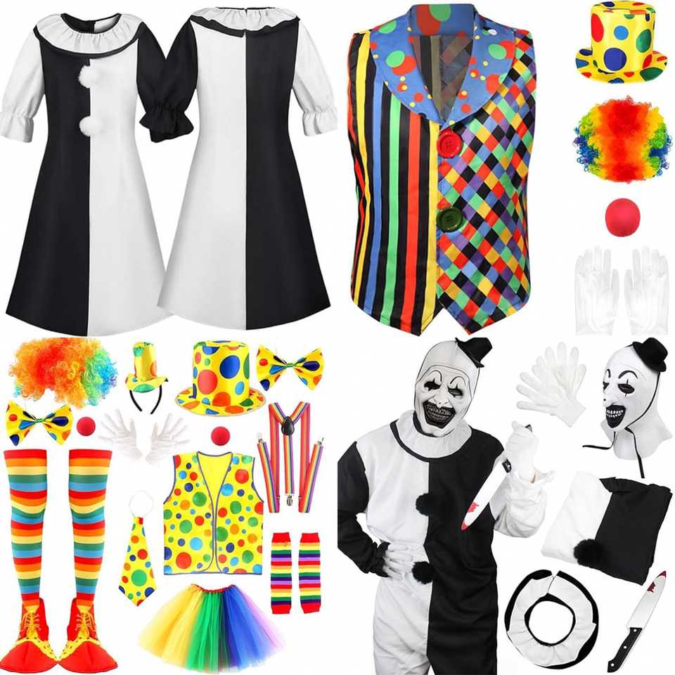 Usine fournissant des costumes de clown pour hommes adultes, robe de fête de goblin, tenue d'Halloween effrayante avec impression en feuille, taille personnalisée