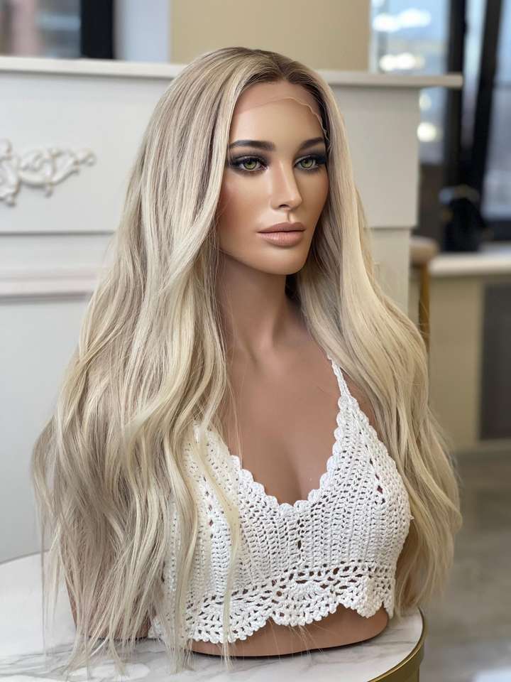 Perruque Lace Front Wig HD Invisible avec faux cuir chevelu en soie pour femmes, perruque personnalisée en usine, couleur Blonde platine ombrée, 100%